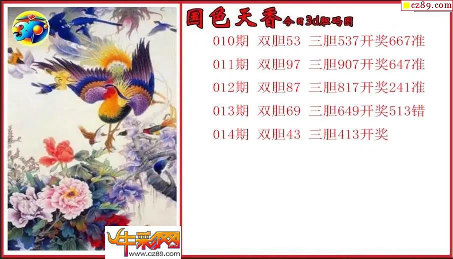 > 26年014期3d 国色天香今日胆码图